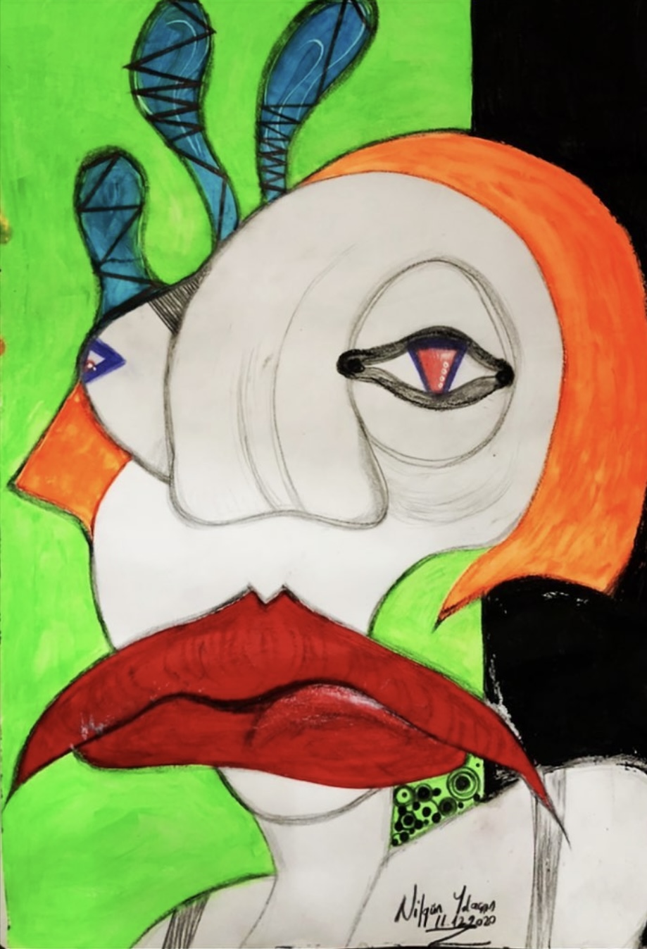 ‘ORANGE HAIR’ Mixed Media on Paper 34,5×47,5 cm